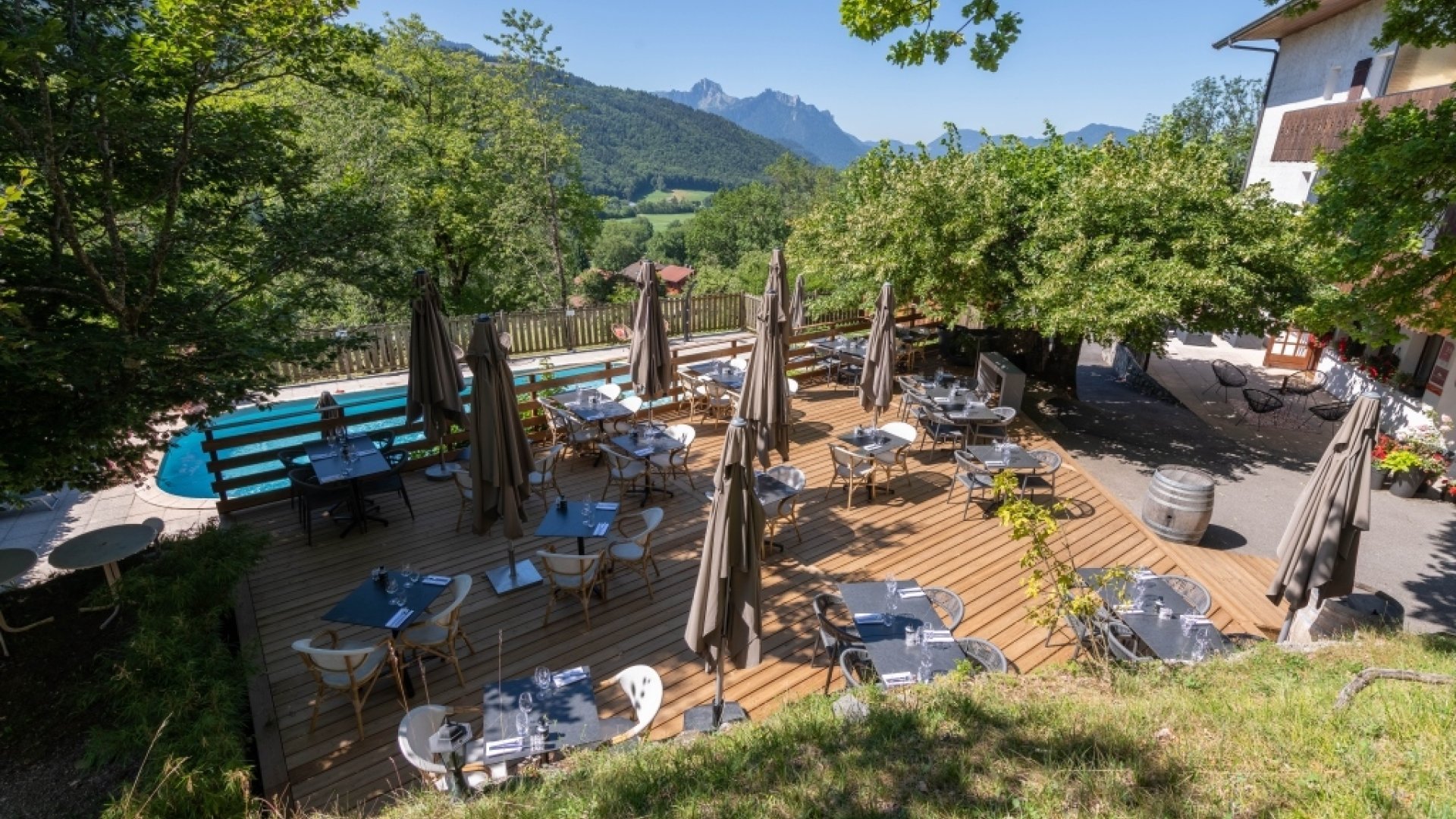 En toute saison, L'Hôtel Le Bois Joli & Le Restaurant "La Table d'Oche" bénéficie d’un cadre privilégié entre lacs et montagnes.